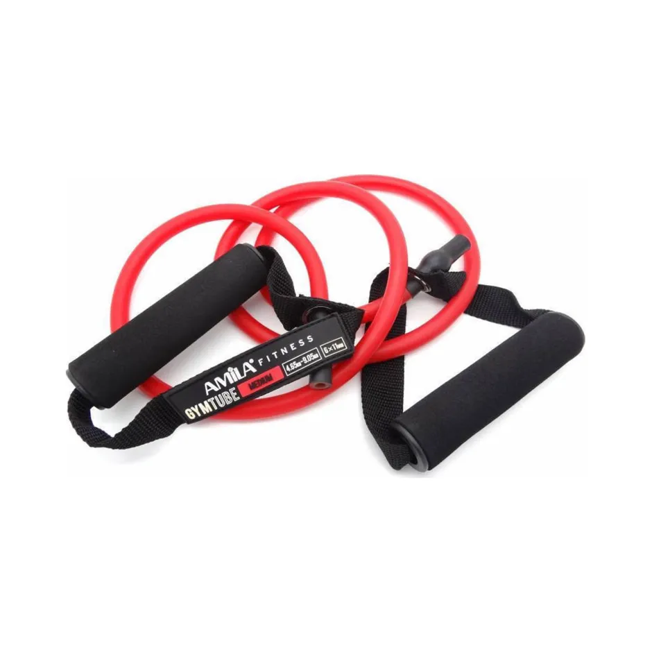 AMILA Λάστιχο Γυμναστικής Σωληνωτό Μέτριο με Λαβές Κόκκινο 1.4m