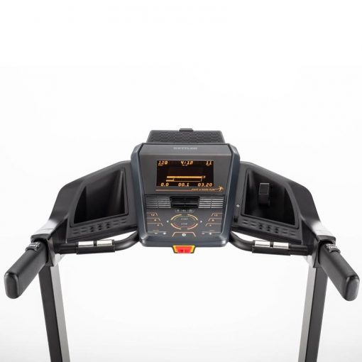 Η κορυφαίας τεχνολογίας κονσόλα προπόνησης του διαδρόμου Track S6 είναι κατασκευασμένη από υψηλής ποιότητας, ανθεκτικό στην εφίδρωση πλαστικό περίβλημα με επιφάνεια από ακρυλικό γυαλί και ανθεκτικά στην εφίδρωση πλήκτρα ελέγχου. Διαθέτει κάθε λειτουργία που χρειάζεσαι για να κάνεις την προπόνησή σου διασκεδαστική και να πετύχεις τους στόχους σου! Το ενσωματωμένο σύστημα Bluetooth επιτρέπει τη διασύνδεση με εφαρμογές, όπως το Kettmaps, με wearables και ζώνες στήθους για ακρίβεια στη μέτρηση των καρδιακών παλμών. Στη μνήμη του διαδρόμου μπορούν να αποθηκευτούν δεδομένα προπόνησης για 4 χρήστες + 1 επισκέπτη. Κάθε χρήστης έχει μία ξεχωριστή “Περιοχή Προπόνησης” για έλεγχο μόνο των δικών του προσωπικών δεδομένων και διαθέτει λειτουργία Προσωπικής Έντασης Προπόνησης και Ρυθμίσεις Προπόνησης.