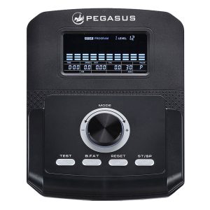 Η κονσόλα του E10 έρχεται με οθόνη LCD μπλε οπίσθιου φωτισμού, η οποία σας επιτρέπει να λαμβάνετε σημαντικές πληροφορίες σχετικά με τον χρόνο της άσκησης, την απόσταση που διανύσατε, την ταχύτητα με την οποία προπονηθήκατε και τις θερμίδες που καταναλώσατε.