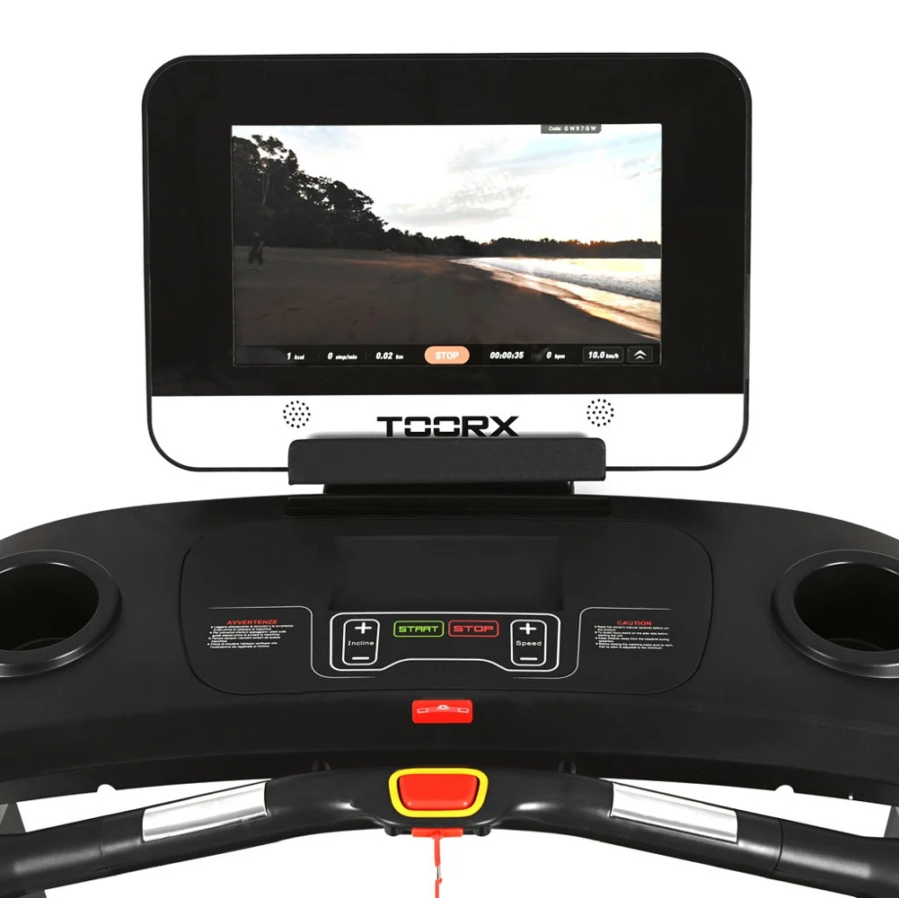Η ιταλική Toorx εφαρμόζει εξαιρετικά αυστηρές προδιαγραφές ποιότητας κατασκευής. Συστήνει το διάδρομο γυμναστικής TRX 3500 TFT για άτομα έως 160kg.
