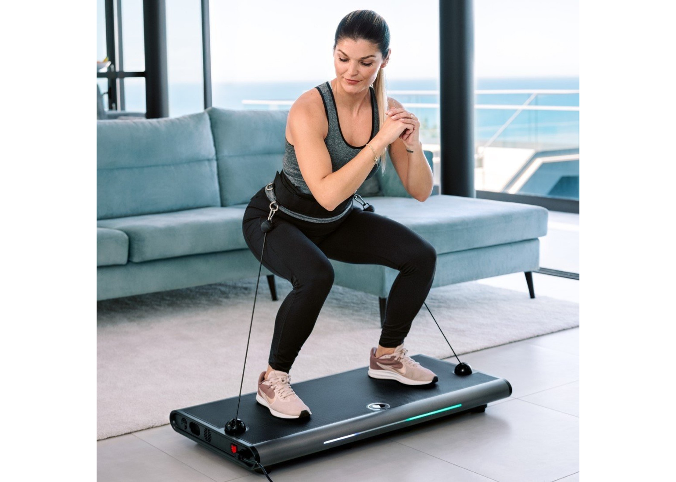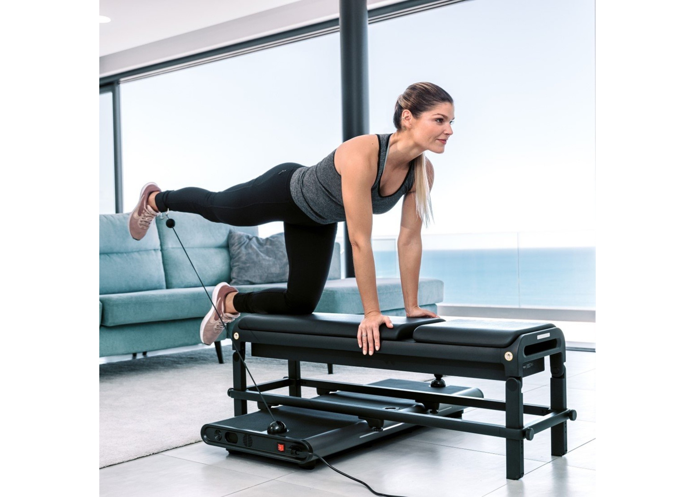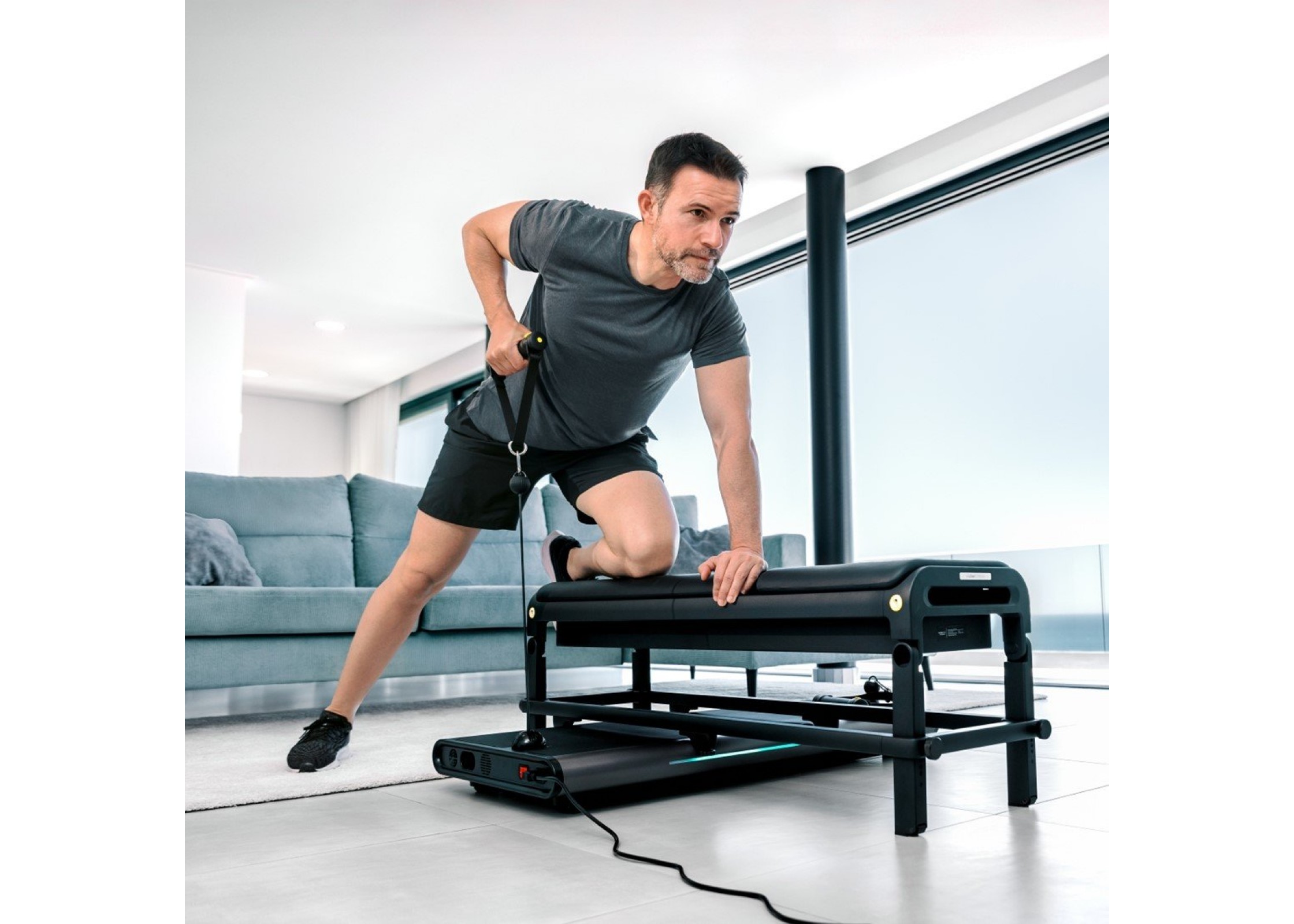 πλήρους γυμναστηρίου, όλα σε απόσταση μόλις ενός τετραγωνικού μέτρου. Δεν απαιτείται επιπλέον εξοπλισμός – όλα για μια αποτελεσματική προπόνηση περιλαμβάνονται.