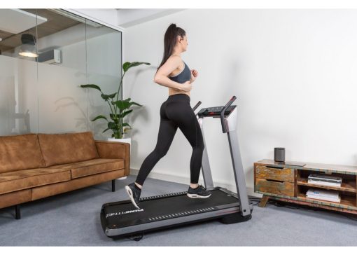 Ο ηλεκτρικός διάδρομος Flow Runner DTM400i αποτελεί την καλύτερη fitness επιλογή για να κάψετε θερμίδες και να χάσετε βάρος, αλλά και για να βελτιώσετε τη φυσική σας κατάσταση και αντοχή κάνοντας γυμναστική στην άνεση του σπιτιού σας. Μπορείτε να ξεκινήσετε σχεδόν αμέσως, καθώς αυτό το μηχάνημα γυμναστικής είναι κατά 99% προ-συναρμολογημένο και επομένως είναι έτοιμο για χρήση σε λιγότερο από ένα λεπτό. Διαθέτει ισχυρό και αθόρυβο κινητήρα με ταχύτητα έως 14 km/h και είναι κατάλληλος για χρήστες με βάρος έως 120 κιλά. Η άνετη επιφάνεια τρεξίματος με διαστάσεις 130×49 cm, σας επιτρέπει να κινείστε με ασφάλεια και σταθερότητα χωρίς κανένα περιορισμό ακόμη και στη μέγιστη ταχύτητα όπου ο βηματισμός είναι λιγότερο ελεγχόμενος.