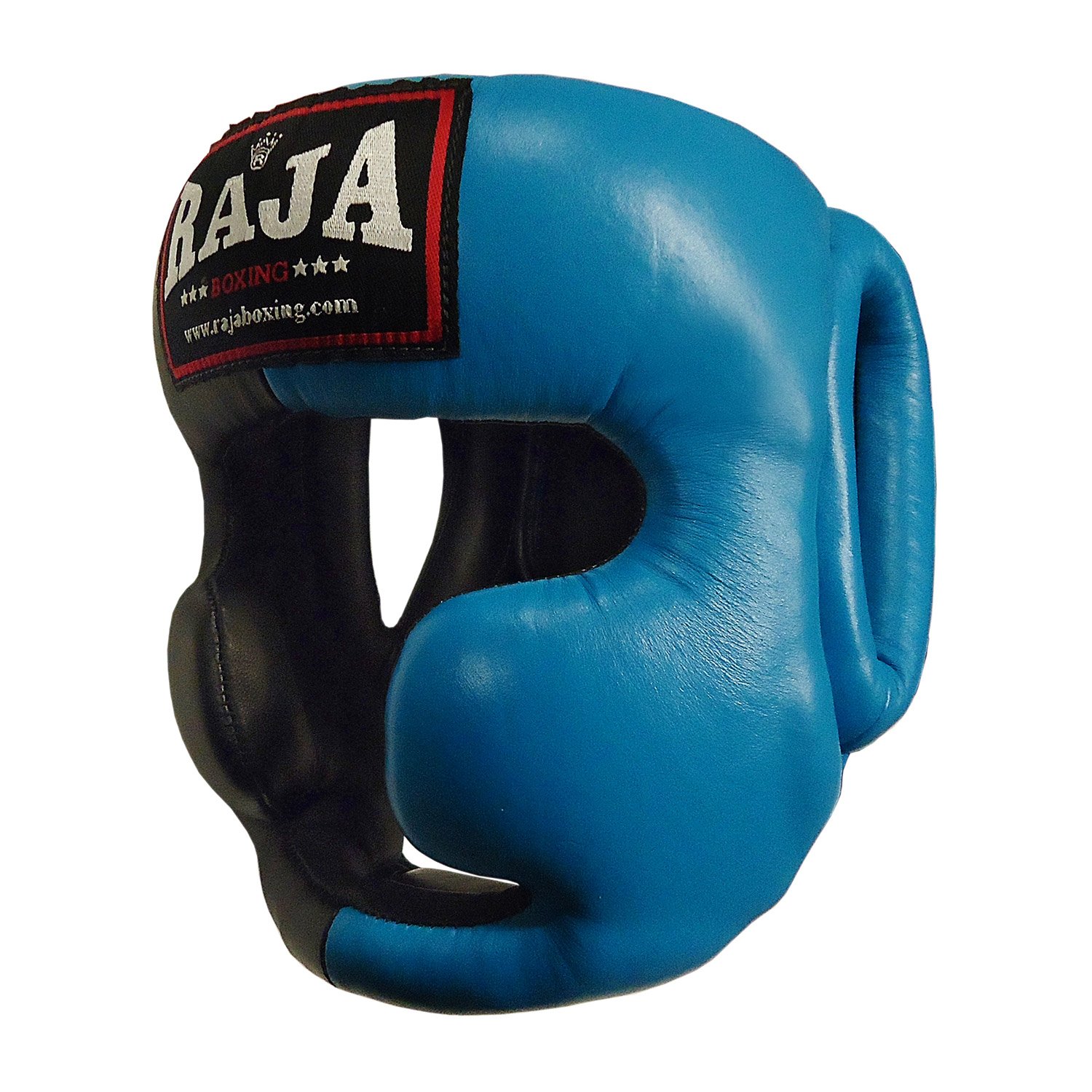 Μία από τις ποιο προστατευτικές κάσκες κατασκευασμένη από έναν από τους κυρίαρχους κατασκευαστές προϊόντων muaythai, την Raja boxing. Αυτή η κάσκα προσφέρει προστασία στα μάγουλα και στο σαγόνι, είναι υπέρ-άνετη και προστατεύει όλα τα σημεία του κεφαλιού. Κατασκευασμένη από 100% δέρμα αγελάδας, έχει μεγάλη αντοχή, άνεση και στυλ.