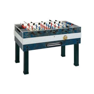 | Χαρακτηριστικά : | Με τηλεσκοπικές ράβδους. Πλαίσιο από ανθεκτικό στεγανό περίβλημα κατασκευασμένο από υψηλής ποιότητας πολυστρωματικό κόντρα πλακέ επικαλυμμένο με πλαστικό φύλλο και ειδική κόλλα για την αδιάβροχη στεγανοποίηση. Στιβαρά τετράγωνα χαλύβδινα πόδια (9 x 9 cm) με επικάλυψη ανθεκτικού βερνικιού. Χρωμιωμένες χαλύβδινες ράβδοι πάχους 16 mm για αποτροπή σχηματισμού σκουριάς. Επιφάνεια παιχνιδιού πάχους 5mm, αντιθαμβωτική. Λευκές γραμμές από μεταξοτυπία πάνω σε πράσινο φόντο που παρομοιάζουν γήπεδο ποδοσφαίρου. Είσοδος της μπάλας από ειδικό μηχανισμό από τη μεριά του κερματοδέκτη. Νέες γωνίες παιχνιδιού σε ομαλή συνέχεια από την επιφάνεια παιχνιδιού. Τέρματα επικαλυμμένα με κράμα αλουμινίου και ψευδαργύρου για αποτροπή της φθοράς |