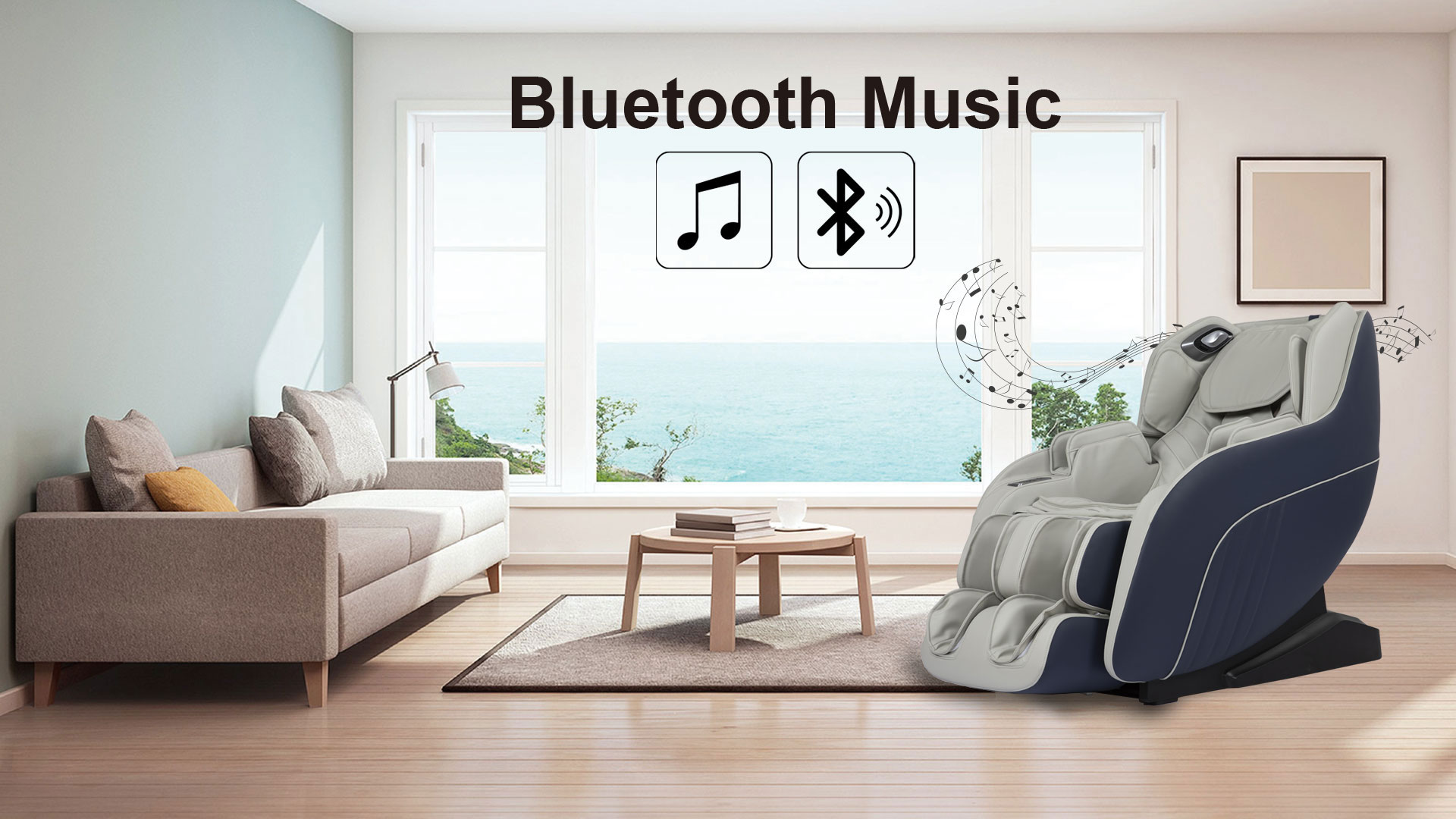 Κατόπιν ενεργοποίησης της λειτουργίας bluetooth της πολυθρόνας, η συσκευής πηγής ήχου (π.χ. κινητό τηλέφωνο ή διαδικτυακό tablet) μπορεί να συνδεθεί με τη μονάδα bluetooth της πολυθρόνας και η μουσική που αναπαράγεται από την συσκευή πηγής ήχου μπορεί να μεταδοθεί ασύρματα στο ηχοσύστημα της πολυθρόνας μασάζ για αναπαραγωγή.