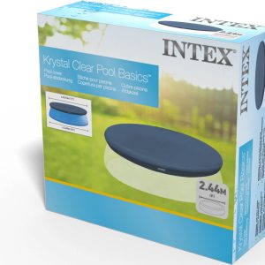 Προστατέψτε την πισίνα Easy Set® της Intex με το ειδικό κάλυμμα πισίνας. Άμα δεν θέλετε να μαζεύετε κάθε μέρα τα φύλλα που πέφτουν το βράδυ η λύση του καλύμματος είναι επιβεβλημένη. Περιλαμβάνει σχοινί για να το δένετε, και τρύπες για να αποφεύγεται η υπερβολική συγκέντρωση νερού πάνω στο κάλυμμα.