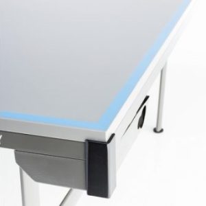 - Σύστημα μεταφοράς με νέα διπλά ροδάκια παντός εδάφους, για άνετη μεταφορά του τραπεζιού ακόμα και σε ανώμαλες επιφάνειες.
