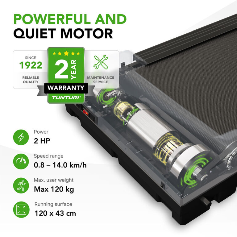 - Ευρύχωρη επιφάνεια τρεξίματος 120 × 43 cm και ταχύτητα έως 14 km/h