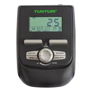 Η 5,5 ιντσών οθόνη απεικονίζει τις σημαντικότερες παραμέτρους άσκησης: χρόνο, απόσταση, θερμίδες, καρδιακούς παλμούς, ταχύτητα και πεταλιές/λεπτό. Με το πάτημα μερικών κουμπιών μπορείτε να μετρήσετε τον Δείκτη Μάζας Σώματός σας, το ποσοστό λίπους, καθώς και να ξεκινήσετε μια μέτρηση ταχύτητας επαναφοράς καρδιακών παλμών με τεστ φυσικής κατάστασης. Το τεστ αυτό μετρά την ταχύτητα με την οποία οι καρδιακοί παλμοί σας επιστρέφουν σε φυσιολογικά επίπεδα μετά από την άσκηση. Με την τιμή αυτή μπορείτε να δείτε τη φυσική σας κατάσταση. Επίσης, μπορείτε πολύ εύκολα να αλλάξετε την κλίση της οθόνης, ούτως ώστε να βλέπετε πάντα καθαρά όλες τις παραμέτρους άσκησης. Θέλετε να δείτε μια ταινία; Η ενσωματωμένη βάση για tablet θα σας λύσει τα χέρια.