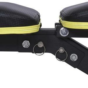 Όλες οι ρυθμίσεις γίνονται γρήγορα και με ασφάλεια μέσω περιστροφικού διακόπτη διπλής δράσης (περιστρέφουμε και έλκουμε για να ασφαλίσει στην νέα θέση), ενώ τόσο ο στιβαρός σκελετός όσο και τα ποιοτικά μαξιλάρια εξασφαλίζουν την άνεση και την σταθερότητα κατά τη διάρκεια της άσκησης.